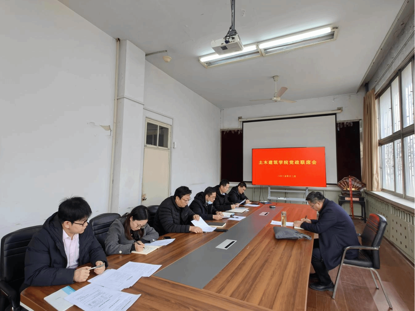 12月31日,我院召开党委会、党政联席会议,学院班子成员参加会议,党委常委、统战部部长徐庆国列席会议。