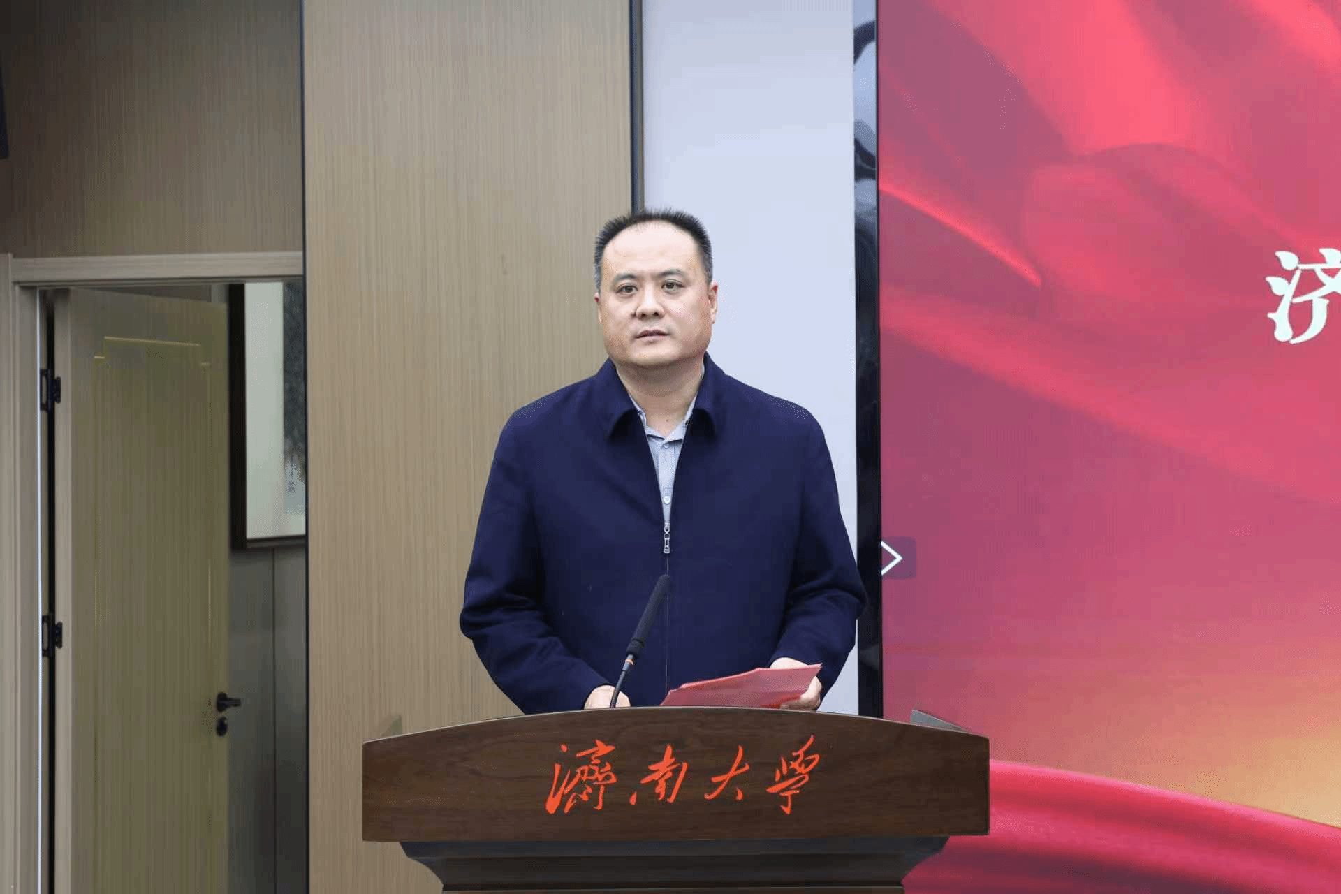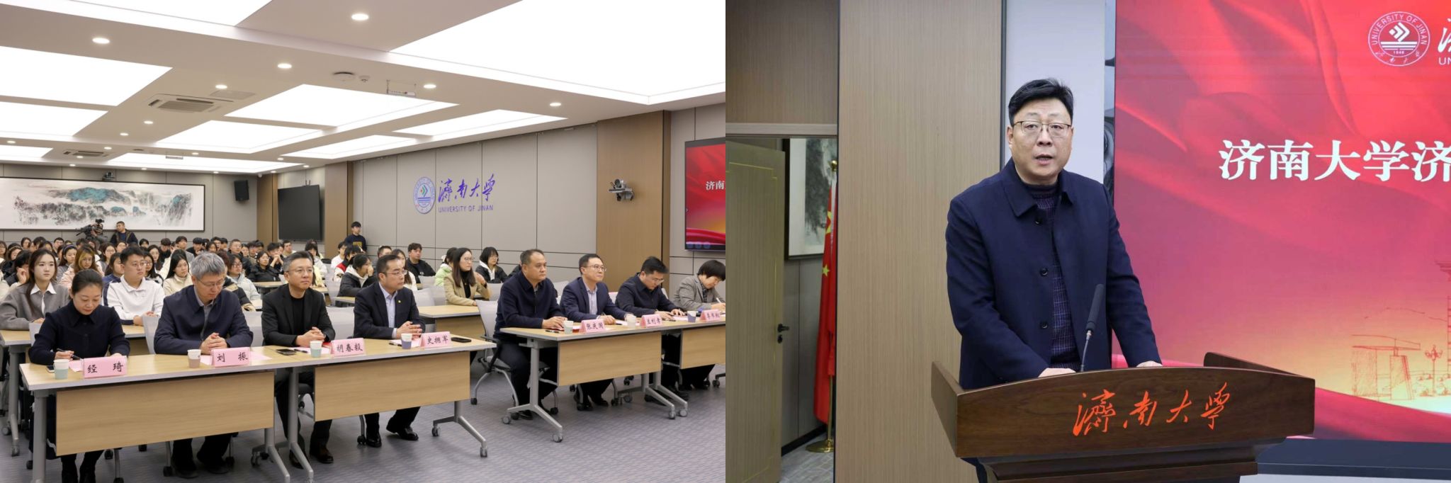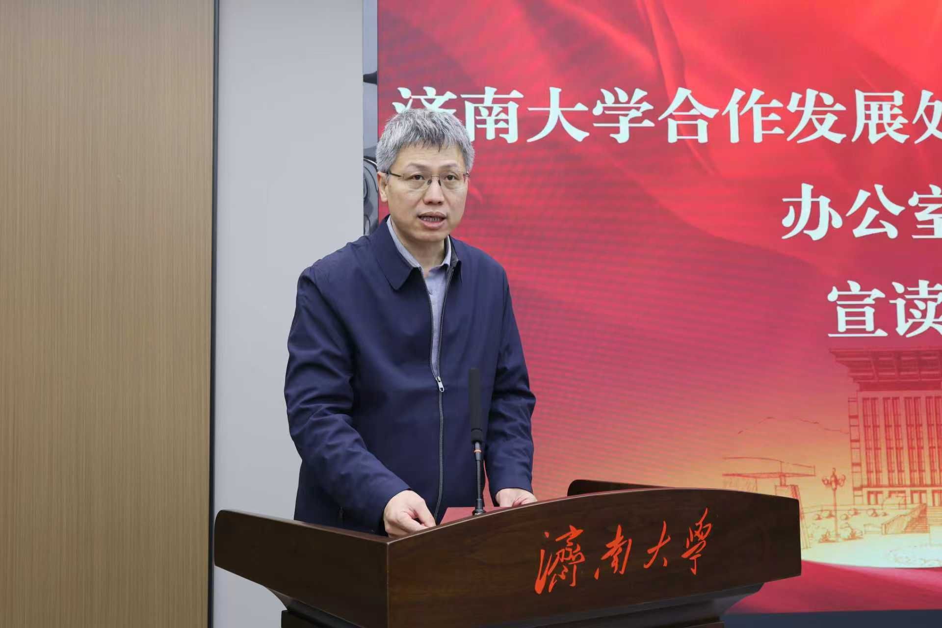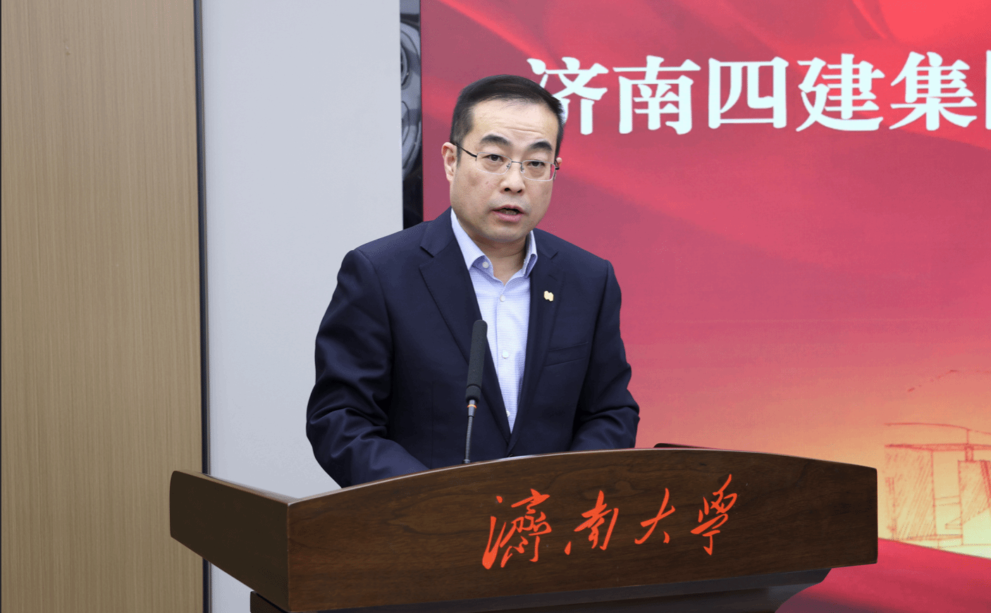 张庆国代表学校对济南四建集团长期以来支持学校人才培养工作表示衷心感谢。他指出,济南四建奖学金的设立,既承载着企业对青年学子的殷切期许,更彰显了企业的社会责任与家国情怀。他希望校企双方持续深化合作、携手共进、共创辉煌,并对青年学生提出三点希望:一是坚定人生方向,砥砺青春之志。将个人理想的“小我”融入党和国家事业的“大我”,自觉做强国建设、民族复兴的中坚力量;二是矢志不懈奋斗,锤炼素质本领。积极践行工程师精神、科学家精神,瞄准专业前沿,对接行业需求,在实习实践中积累经验,在课题研究中破解难题,不断练就干事创业的铁肩膀、硬脊梁;三是勇挑时代重担,彰显青年担当,主动响应时代号召,融入发展洪流,在拼搏实干中成就自我、奉献社会、建设祖国,让青春在中国式现代化建设的火热实践中绽放绚丽之花。