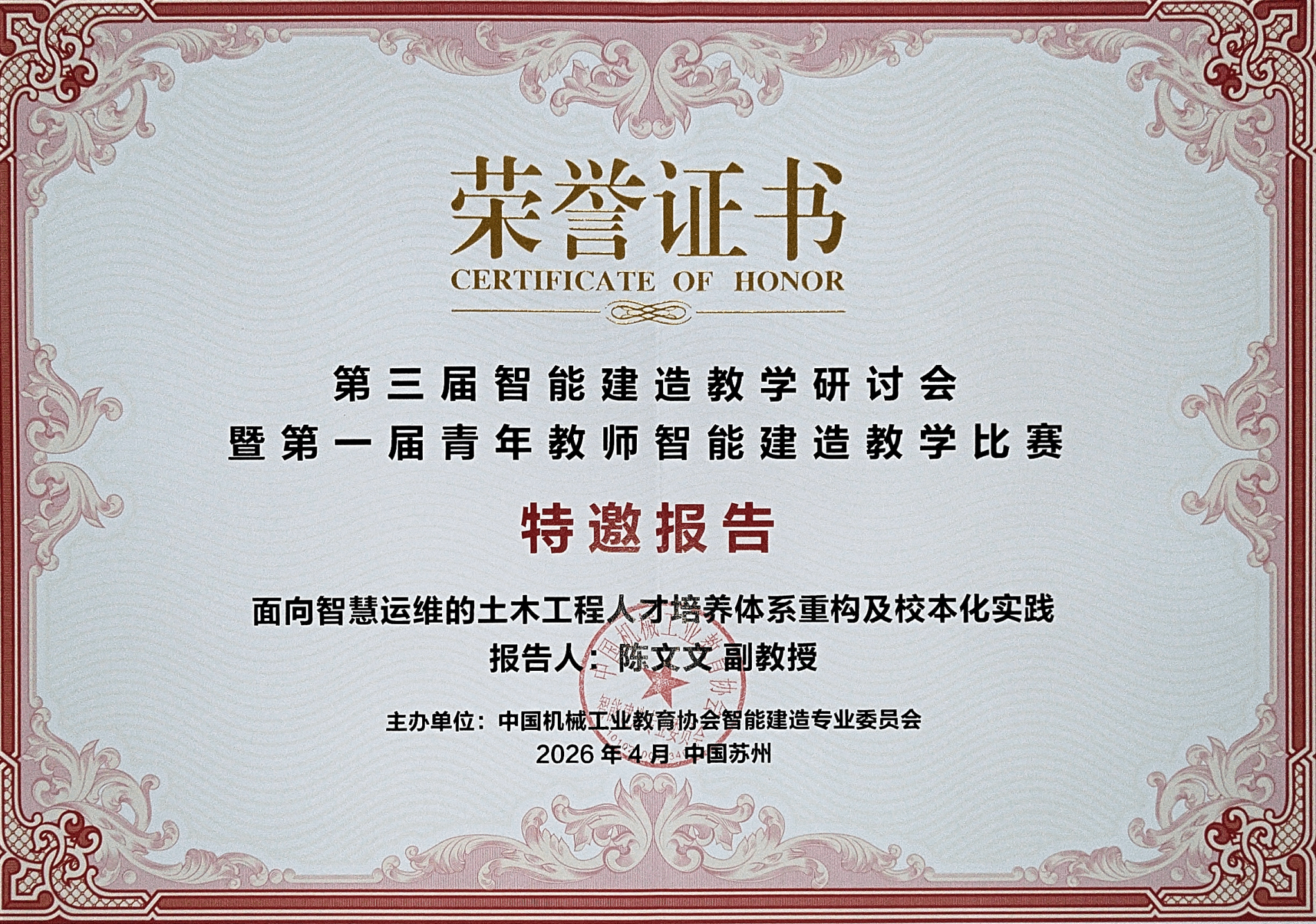 4月17日至19日,第三届智能建造教学研讨会暨第一届青年教师智能建造教学比赛在苏州举办。本次会议由教育部高等学校土木类专业教学指导委员会指导、中国机械工业教育协会智能建造专业委员会主办,汇聚各方代表,共探智能建造人才培养新路径。我院副院长杨涛春、智建系系主任陈文文受邀参会。